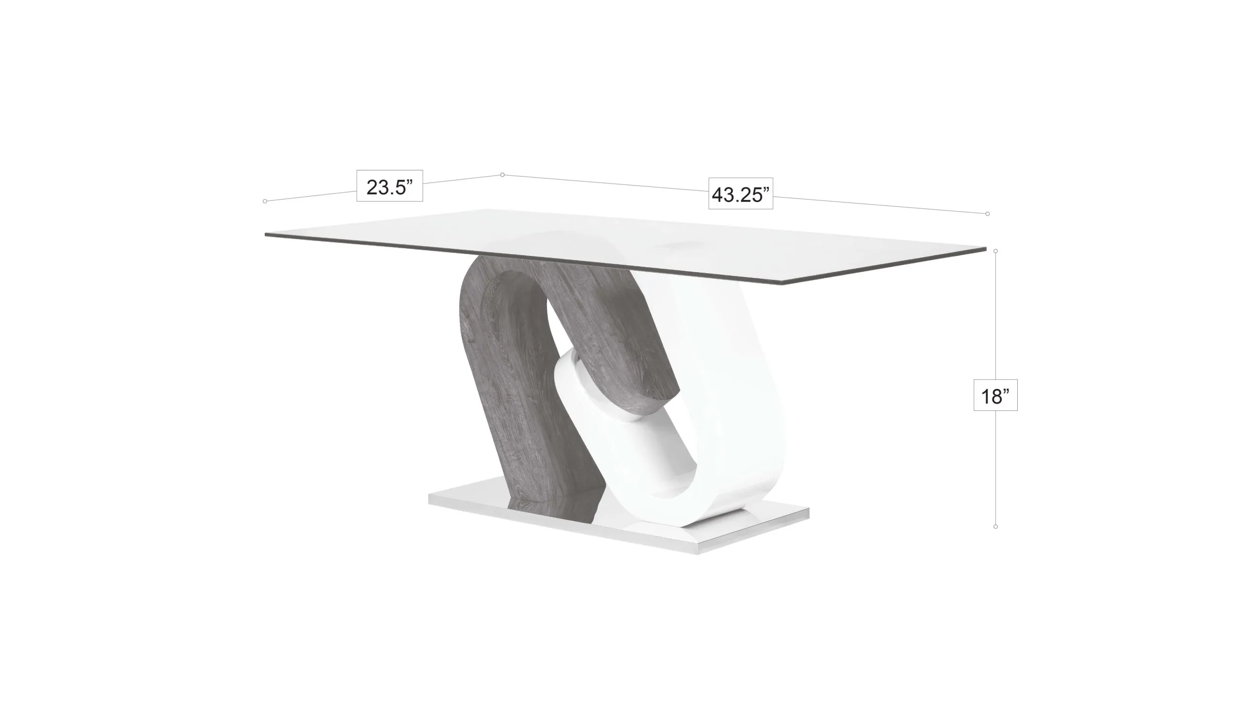 White Gloss Base with Grey washed paper wood look like Clear glass top