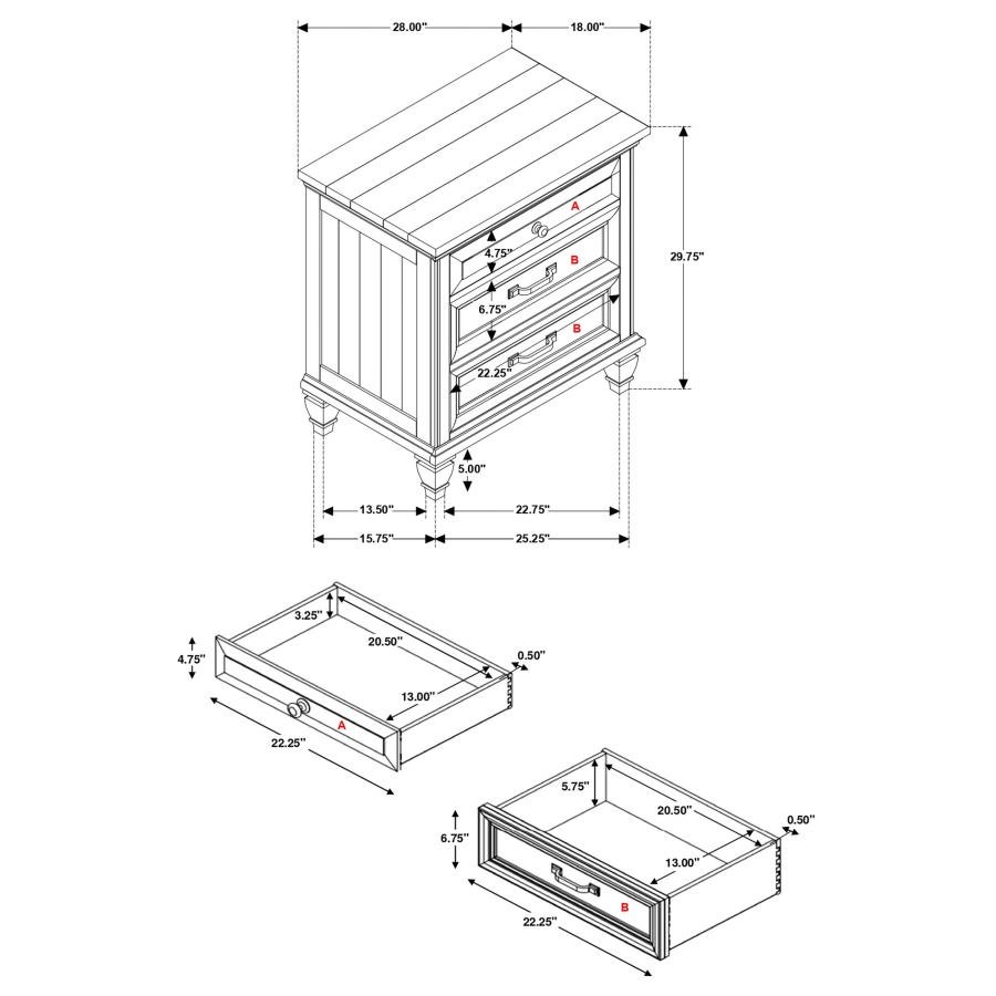 * USB charging ports in nightstand