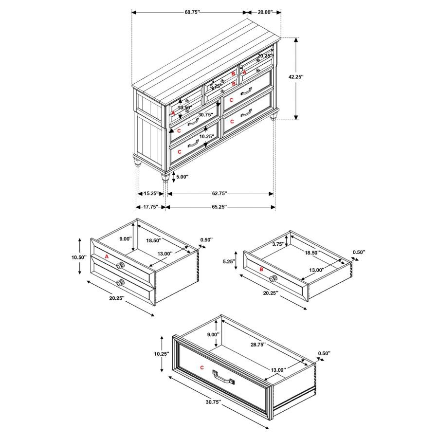 * Top drawers are black felt lined, while remaining drawers are cedar lined