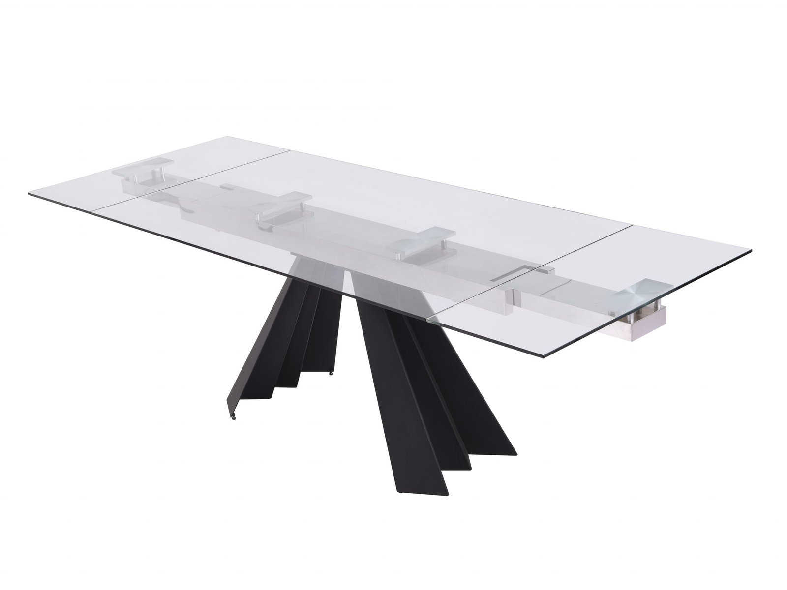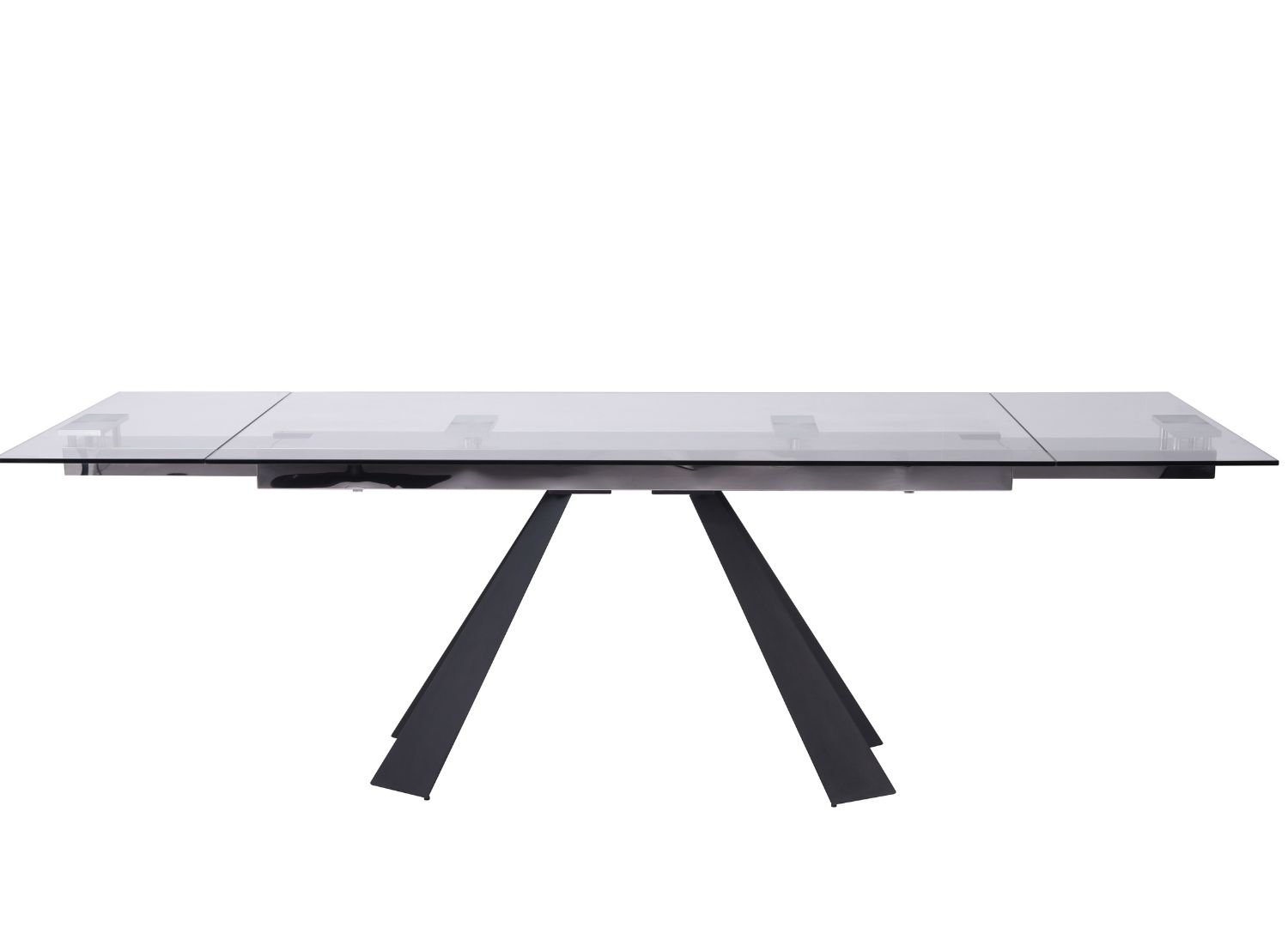 Extendable Dining Table, 10mm tempered clear glass top with Sanded black metal base.