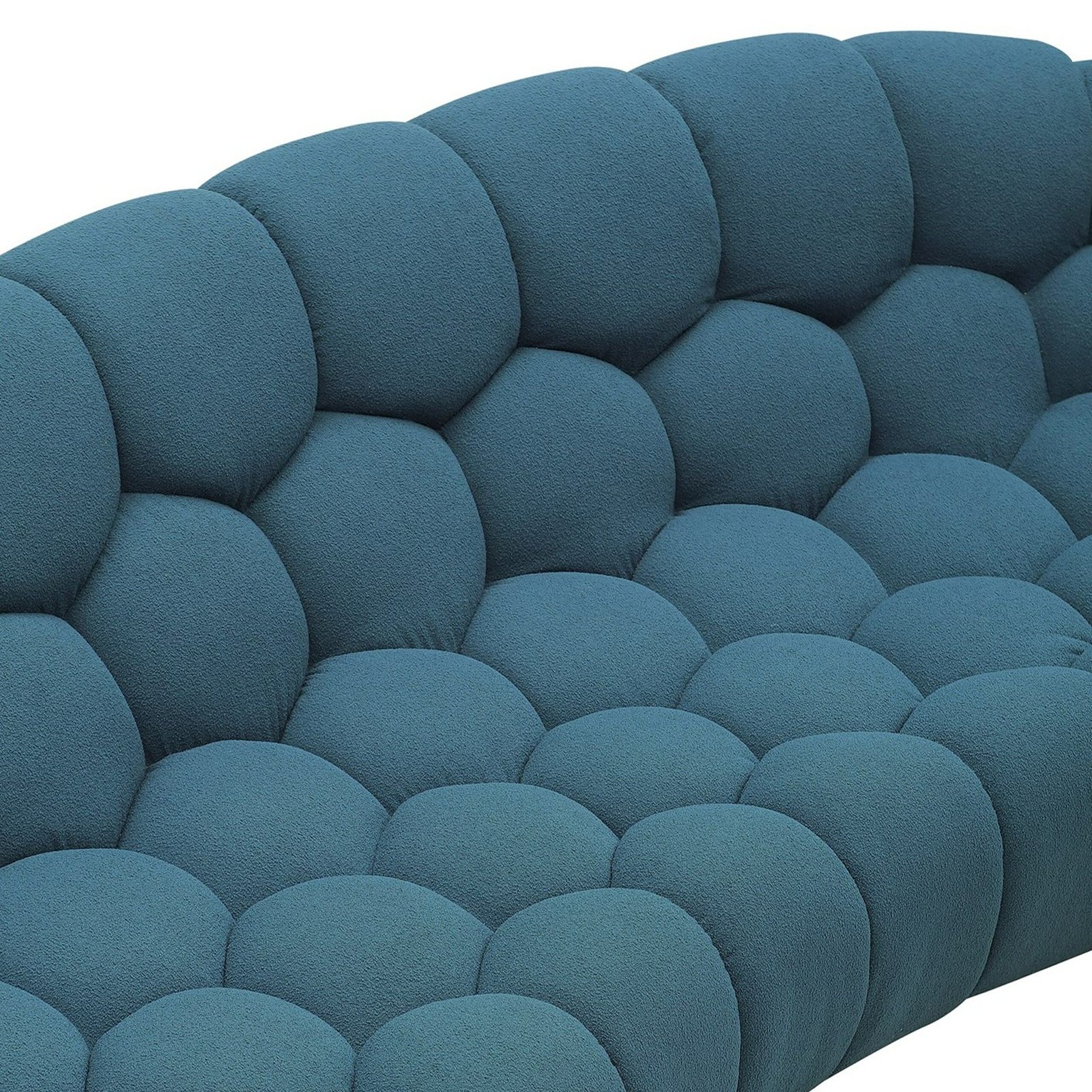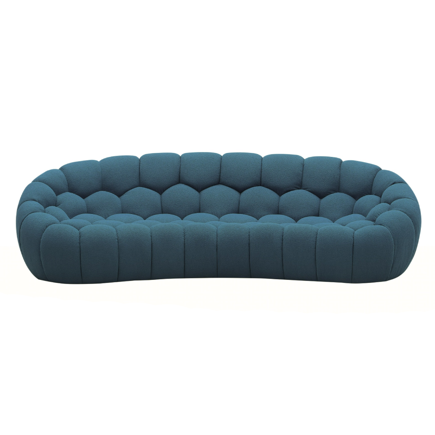 The newest addition to the EAST collection is the Curved Modern Dark Teal Sofa, offering a stunning pop of color for your living space. The hexagonal tufted cushions provide a unique, non-traditional and stylish design for the sofa as well the teddy fabric upholstery providing maximum comfort. The EAST also comes in a Loveseat and Accent Chair.