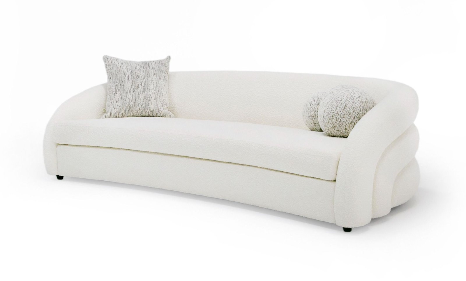 Joana Modern 4-Seater Curved White and Taupe Fabric Sofa