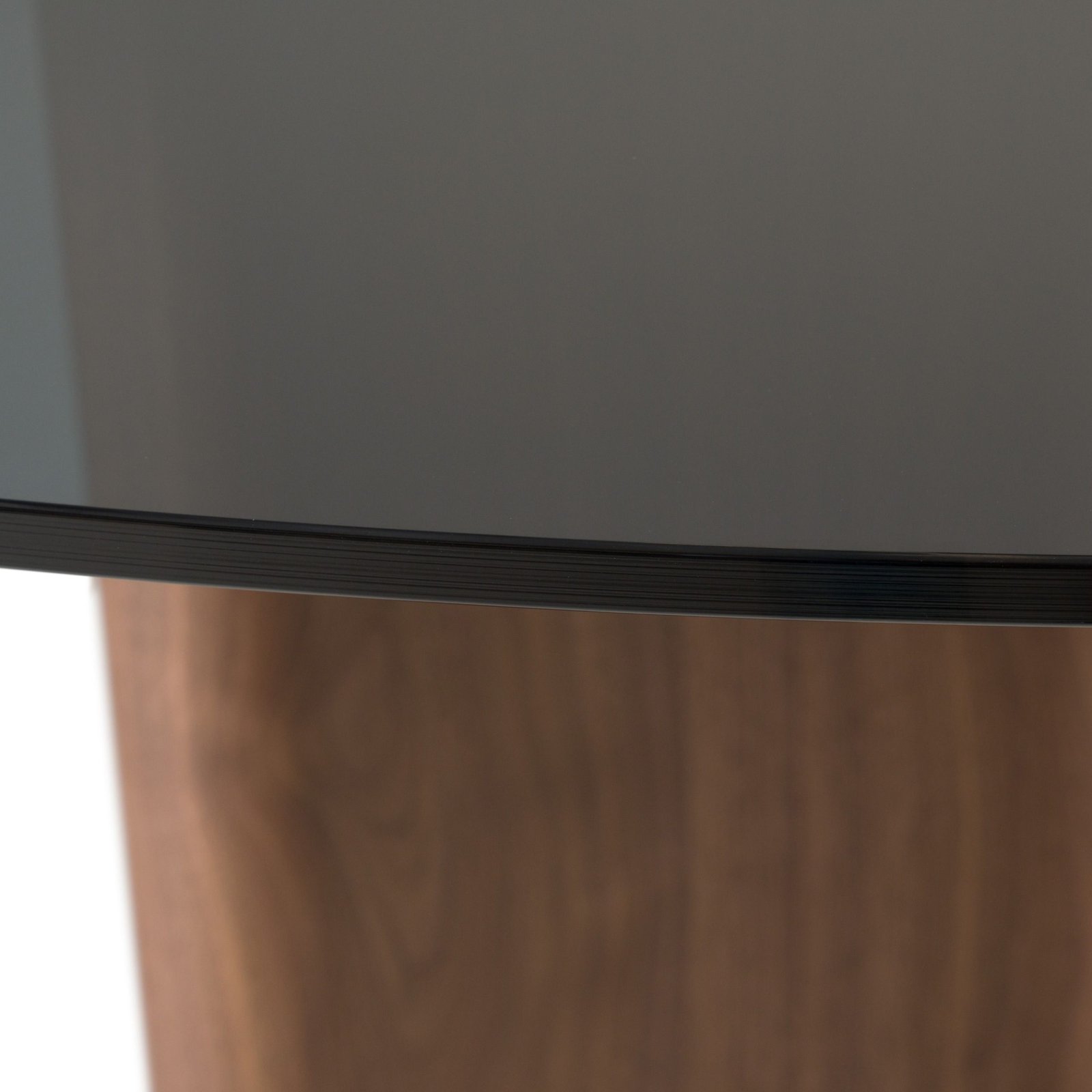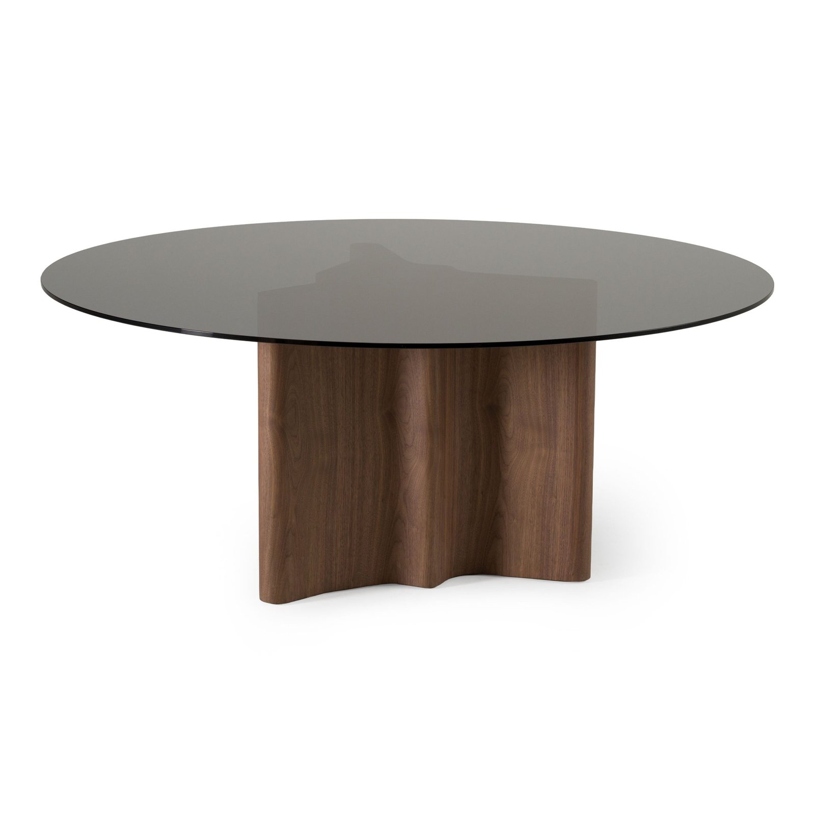 Kaye – Modern Walnut + Glass 71″ Round Dining Table