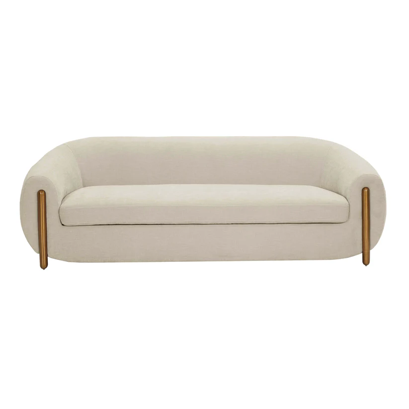 Elevate your home with this stunning Lina Cream Chenille Textured Sofa from the Inspire Me! Home Decor x TOV Collection. Crafted with the finest materials, the Lina Sofa features sumptuous chenille upholstery in a soft cream hue that exudes elegance and sophistication. Plush cushions provide exceptional comfort, making it this sofa the perfect spot to relax after a long day, and the brass details add a luxe statement.
