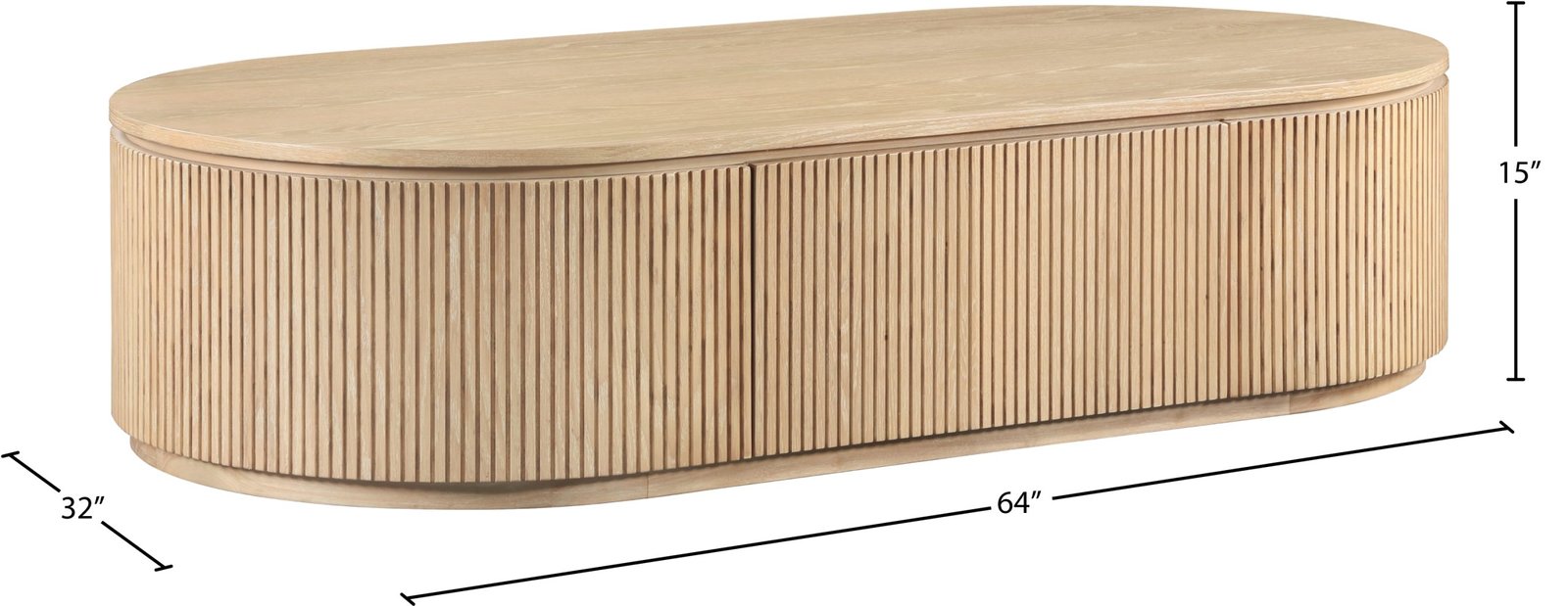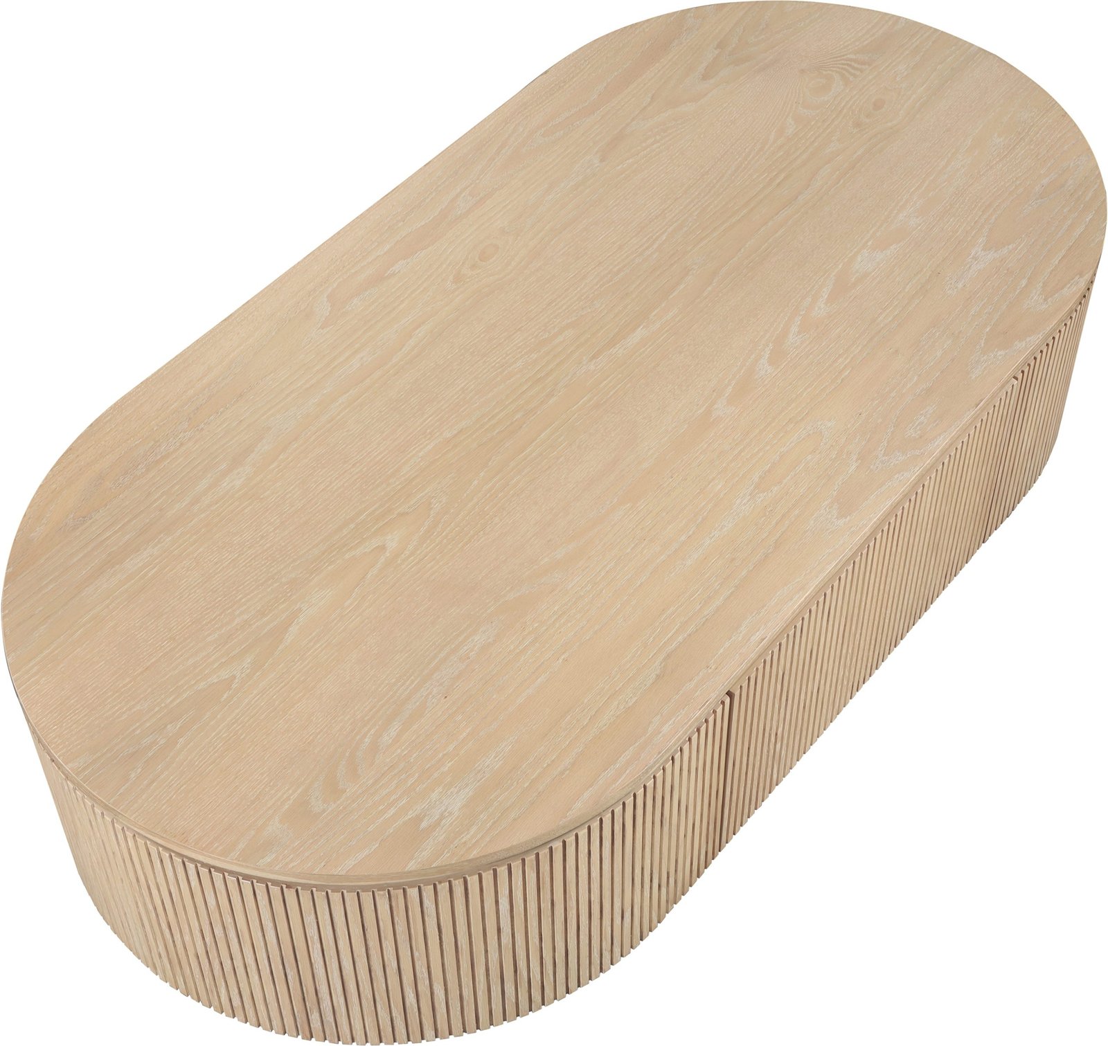 Sleek functionality meets refined craftsmanship in the Moana natural solid oak wood storage coffee table. Wrapped in a rich oak veneer, its fluted wood detailing adds depth and texture, creating a striking visual appeal. The hidden storage cabinet inside keeps essentials neatly tucked away, making it as practical as it is stylish. Designed with a contemporary aesthetic, this statement piece brings effortless sophistication and practicality to any living space.