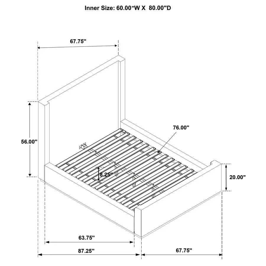 raddling the line between modern and farmhouse, this upholstered platform bed makes a striking statement in any refined yet inviting bedroom. The tall wingback headboard and matching low footboard create a clean, grounded silhouette, while plush foam padding enhances comfort. Wrapped in soft cream boucle fabric, it delivers a cozy, on-trend texture. An exposed solid wood base in an oak finish adds warmth and contrast. Wooden slats and center support legs provide lasting stability for a restful night’s sleep.