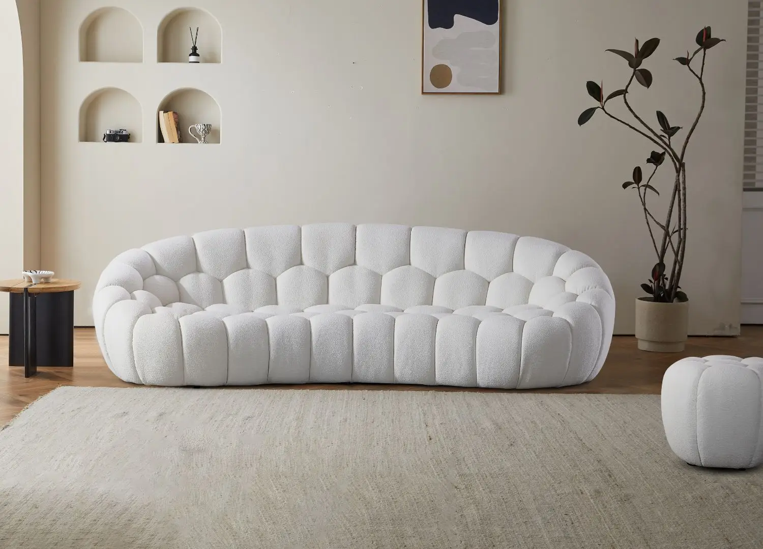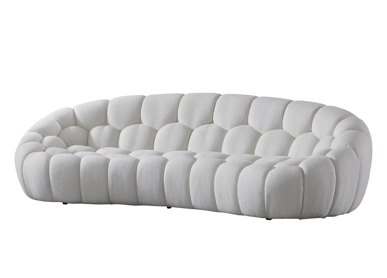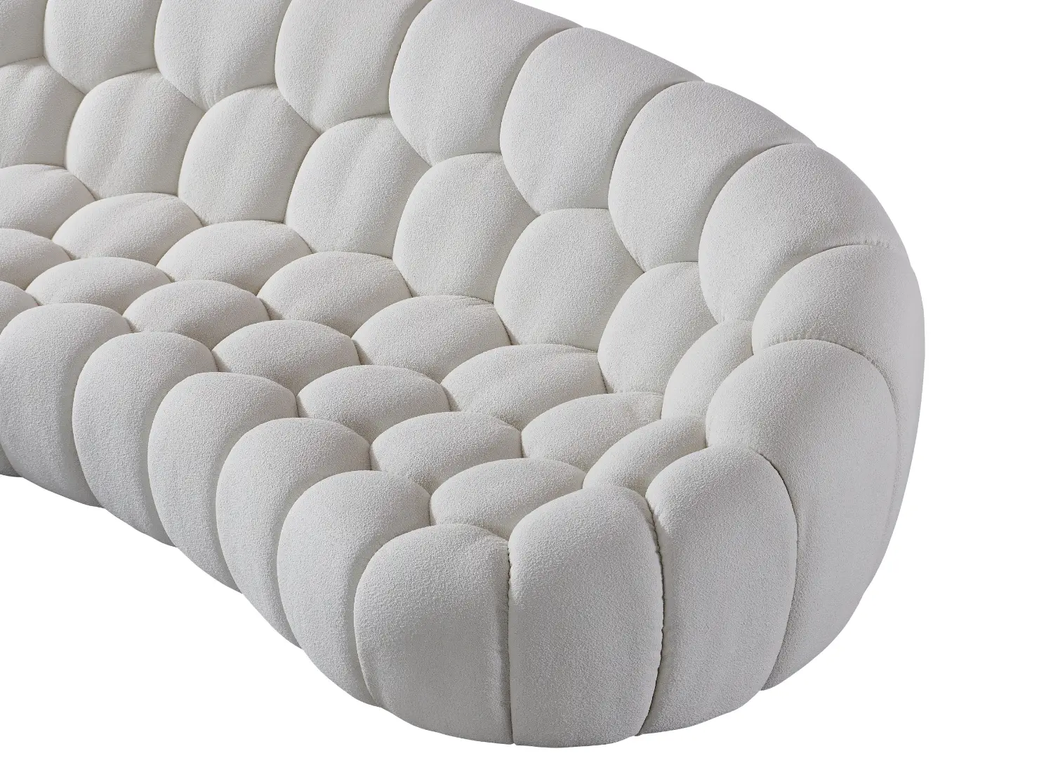 The Nest Curve Sofa Upholstered in White Boucle Fabric, it defines the harmony of emotion, functionality, and innovation. Its distinctive design makes the Nest Sofa an iconic piece in our collection.
