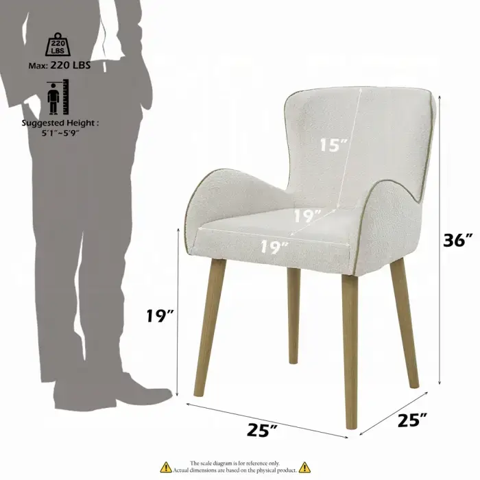 - Finish: Beige Boucle & Oak Finish